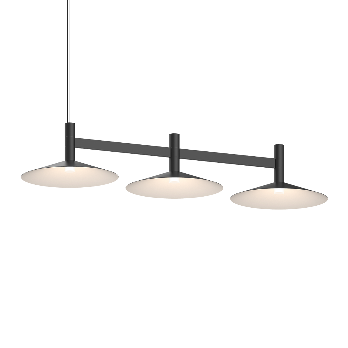 Lightly scaled geometric elements form expansive intersecting or linear constructions of modern minimalism in a variety of configurations with a range of available luminaires. Crisp rectilinear bars support minimal tubular elements with luminous trims, extensions, or shaded reflectors for general and directed lighting functionality. Systema Staccato Linear Pendants are available in multiple sizes and are easy to customize with cone, pan, or drum shades. The Systema Staccato Linear Pendant includes Drum Trims.