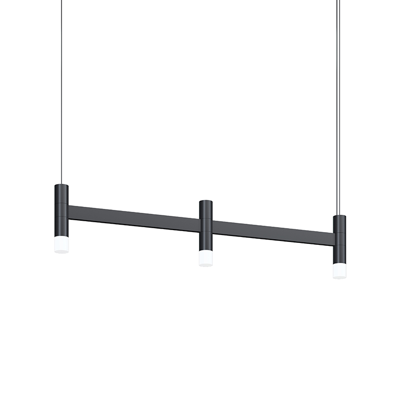 Lightly scaled geometric elements form expansive intersecting or linear constructions of modern minimalism in a variety of configurations with a range of available luminaires. Crisp rectilinear bars support minimal tubular elements with luminous trims, extensions, or shaded reflectors for general and directed lighting functionality. Systema Staccato Linear Pendants are available in multiple sizes and are easy to customize with cone, pan, or drum shades. The Systema Staccato Linear Pendant includes Drum Trims.