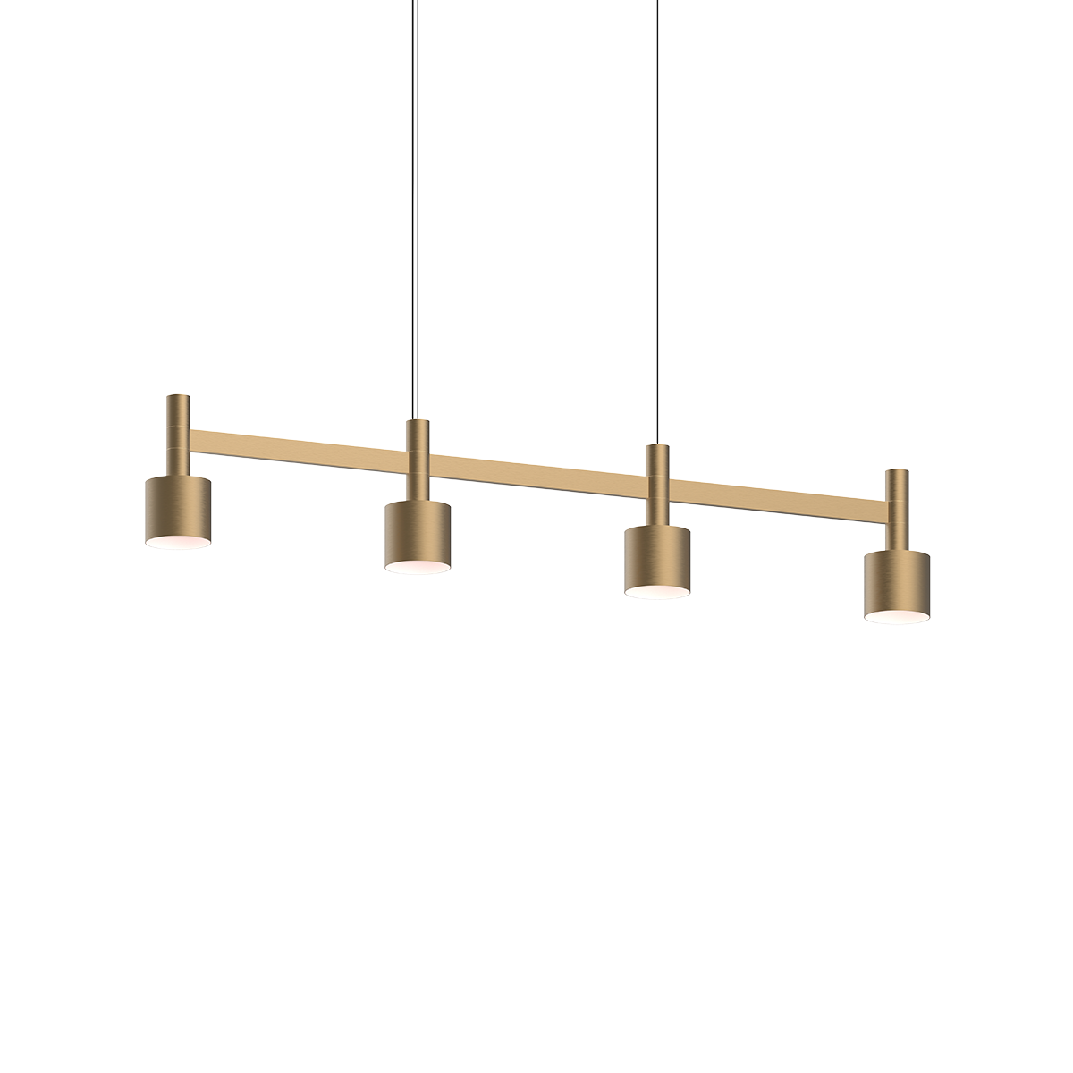 Lightly scaled geometric elements form expansive intersecting or linear constructions of modern minimalism in a variety of configurations with a range of available luminaires. Crisp rectilinear bars support minimal tubular elements with luminous trims, extensions, or shaded reflectors for general and directed lighting functionality. Systema Staccato Linear Pendants are available in multiple sizes and are easy to customize with cone, pan, or drum shades. The Systema Staccato Linear Pendant includes Drum Trims.