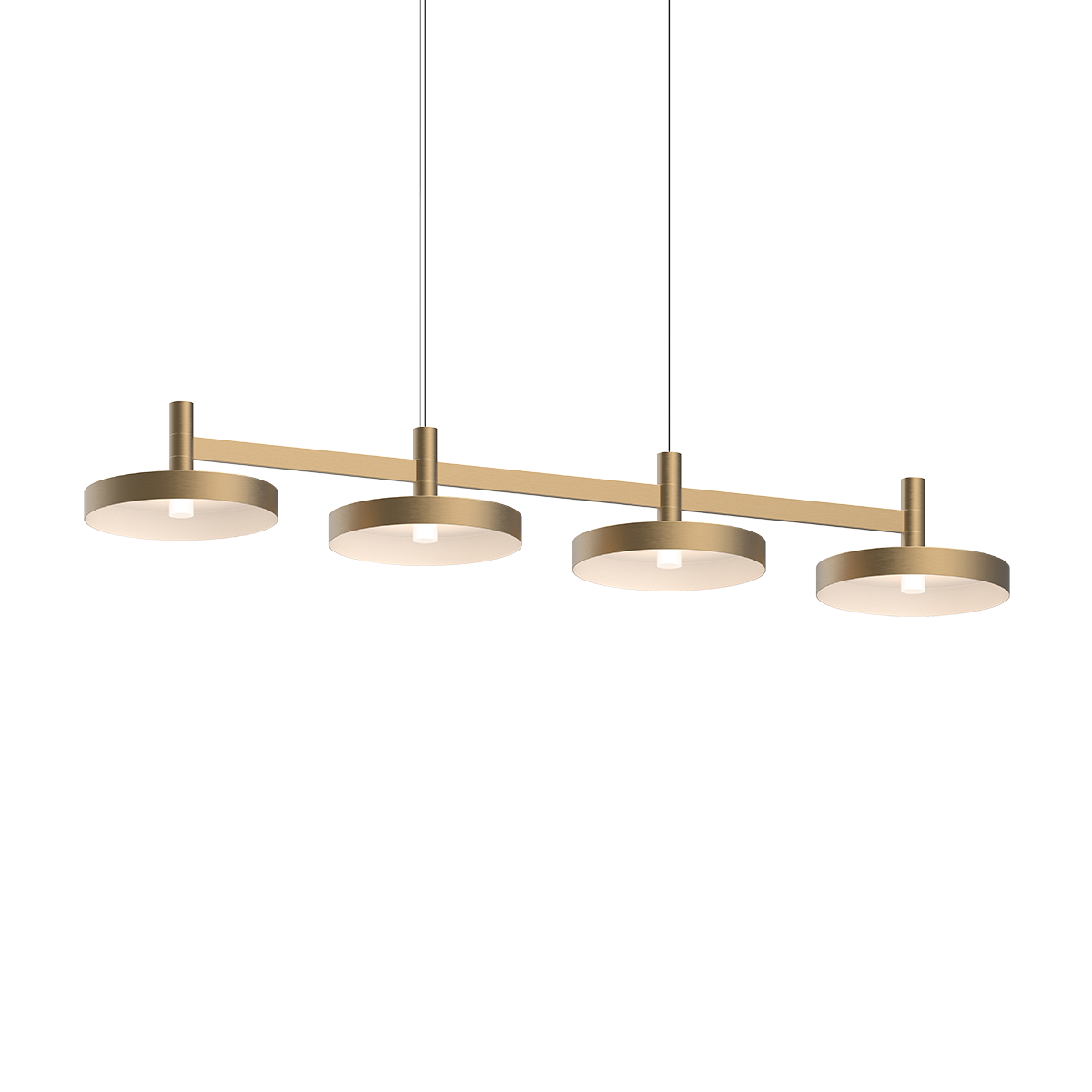 Lightly scaled geometric elements form expansive intersecting or linear constructions of modern minimalism in a variety of configurations with a range of available luminaires. Crisp rectilinear bars support minimal tubular elements with luminous trims, extensions, or shaded reflectors for general and directed lighting functionality. Systema Staccato Linear Pendants are available in multiple sizes and are easy to customize with cone, pan, or drum shades. The Systema Staccato Linear Pendant includes Drum Trims.