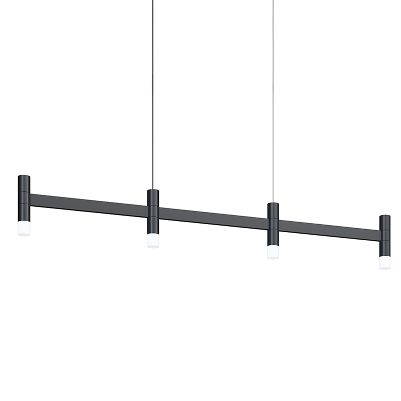 Lightly scaled geometric elements form expansive intersecting or linear constructions of modern minimalism in a variety of configurations with a range of available luminaires. Crisp rectilinear bars support minimal tubular elements with luminous trims, extensions, or shaded reflectors for general and directed lighting functionality. Systema Staccato Linear Pendants are available in multiple sizes and are easy to customize with cone, pan, or drum shades. The Systema Staccato Linear Pendant includes Drum Trims.