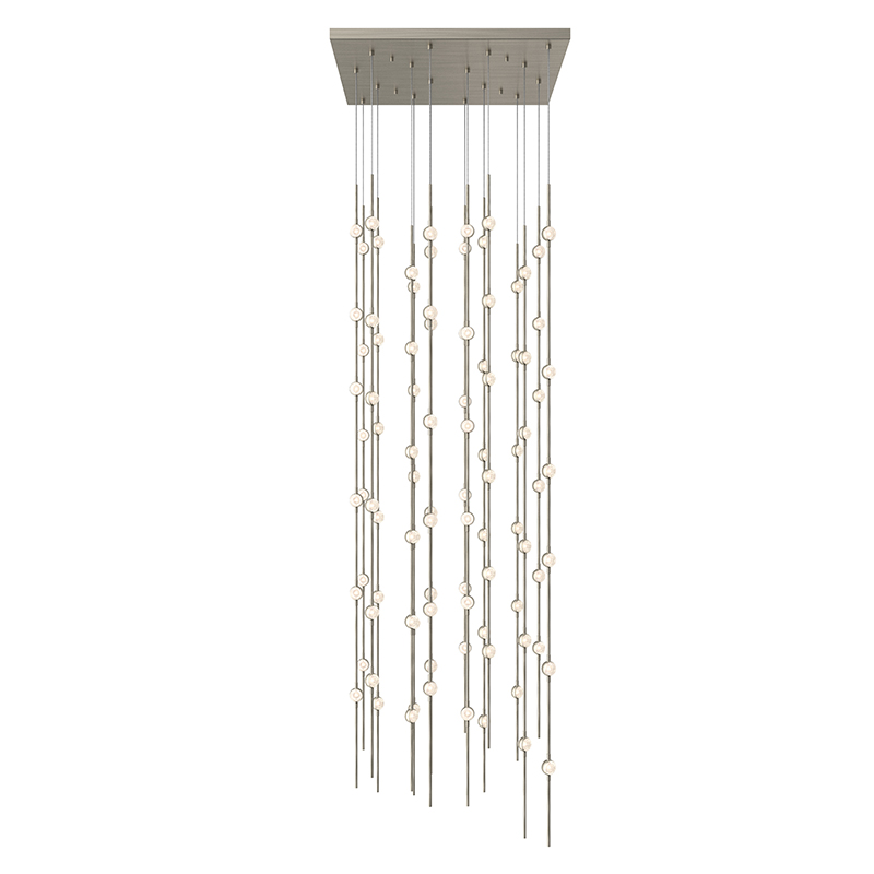 LED hubs connected in linear strands of various lengths are suspended to form dramatically powerful luminance within a vertical space. Available in a variety of sizes and configurations, with lens options of crystal facets or soft white, Constellation Andromeda can also be customized for your project.