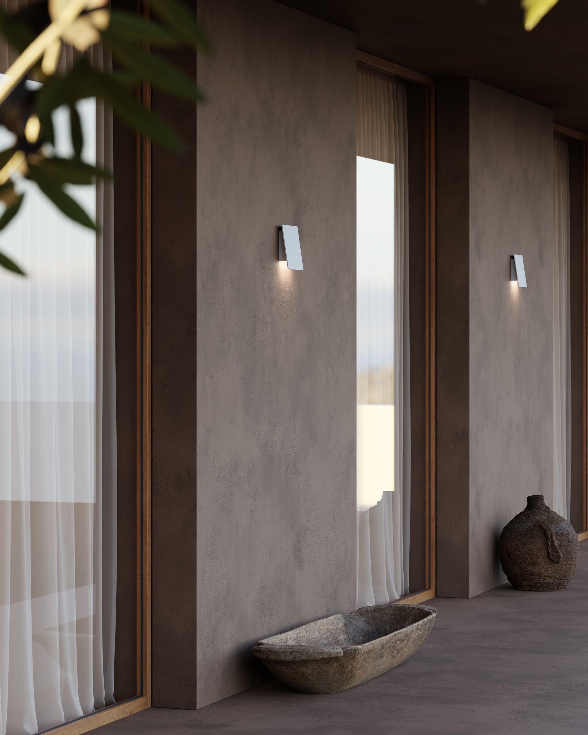 Impossible to improve on geometry, Angled Plane and its slimmer perfectly poised, rectangular counterpart Angled Plane Narrow Sconce, reflect light on a wall with an upward and downward projection. This sconce pairs well with the Angled Plane Downlight Sconce and Narrow Downlight Sconce, which can be installed outdoors.