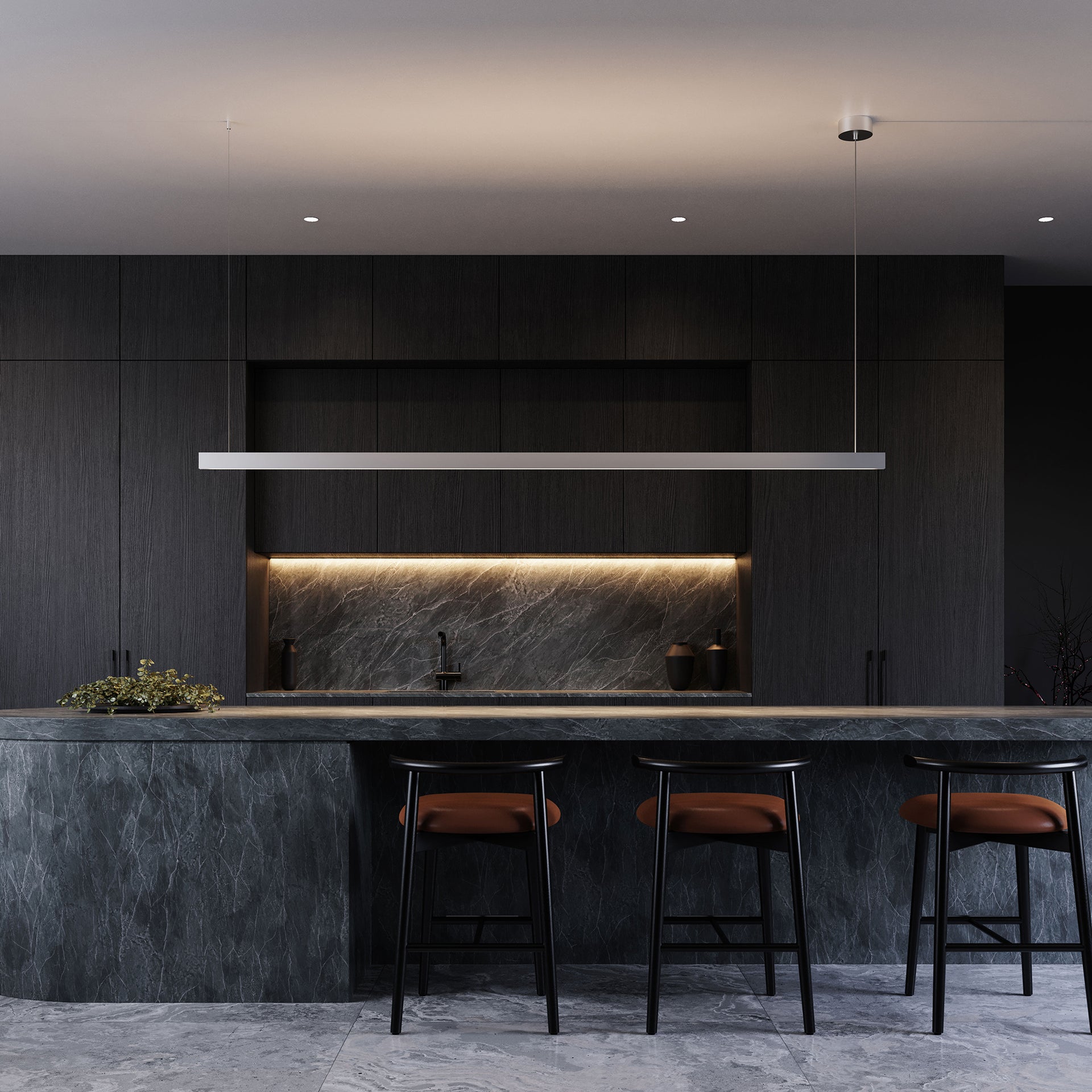 Referencing the industrial elegance of an H beam used in engineering and architecture, Lithe is designed to evenly distribute light in two directions. This sleek and minimal collection is ideal for any modern space, including residential, hospitality and commercial settings. The family includes pendants and wall lamps in textured black, textured white, and natural anodized finishes.